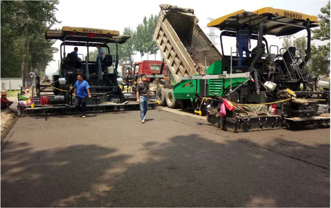 某國(guó)道路段水穩(wěn)施工,攤鋪寬度6m,攤鋪厚度30cm。設(shè)備作業(yè)效果得到施工方及用戶的高度認(rèn)可,使得用戶相繼再次購(gòu)買兩臺(tái)該型號(hào)設(shè)備。