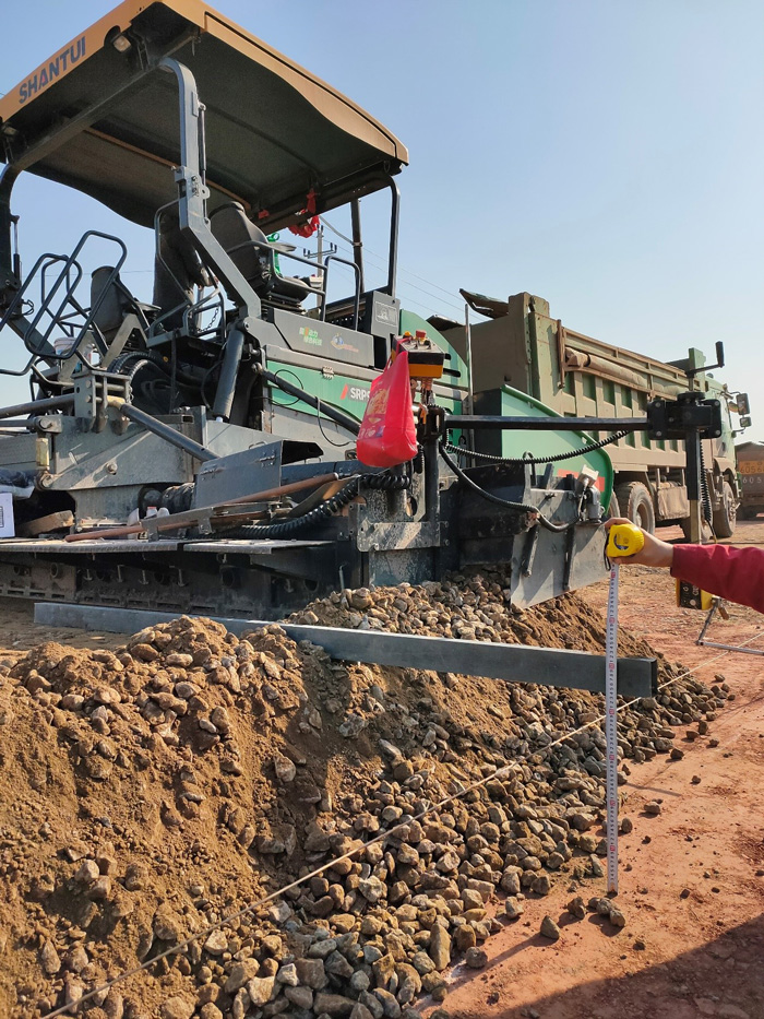 經(jīng)過多品牌攤鋪效率對比,吳總選定了擁有290馬力的可伸縮的山推C5快速攤鋪機(jī)。吳總定車后,山推道機(jī)銷售人員只用了3天時(shí)間就把嶄新的攤鋪機(jī)交付到了嘉興快速路的工地上,每天攤鋪4000噸水穩(wěn)料。