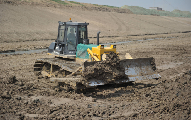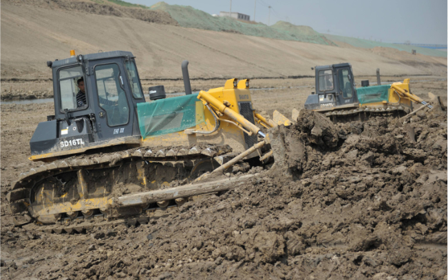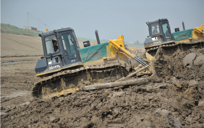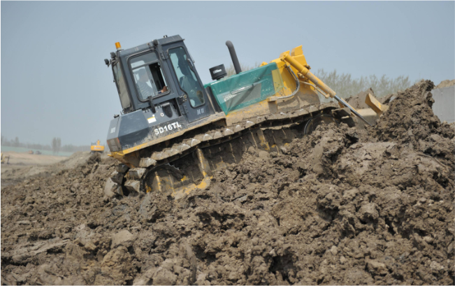 十幾輛山推SD16TL推土機(jī)在運(yùn)河河道內(nèi)作業(yè),“馬力大、省油、駕駛室還舒服”,推土機(jī)駕駛員毫不掩飾的夸贊這些推土機(jī)。SD16TL推土機(jī)超寬的三角型履帶避免了機(jī)器在軟土、濕地、沼澤地帶等松軟物料作業(yè)場(chǎng)所作業(yè)時(shí)的下陷,在河道拓寬、清淤等水利工程施工中具備無(wú)可比擬的作業(yè)能力。