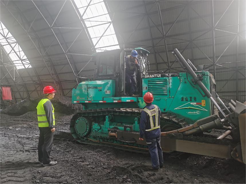 本項目主要涉及煤棚推煤工況,核心任務是將煤粉堆垛后傳輸至傳送帶,以保證電廠燃煤供應的穩(wěn)定性。該電廠采用了四臺山推DE26-X2電動推土機,分別在四個煤棚作業(yè),形成了目前國內電推設備集中度最高的作業(yè)區(qū)域。DE26-X2電推每日工作6-8小時,中午休息1.5小時,并在中午及下午作業(yè)結束后進行充電,以確保設備的持續(xù)高效運行。
