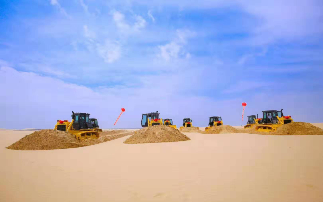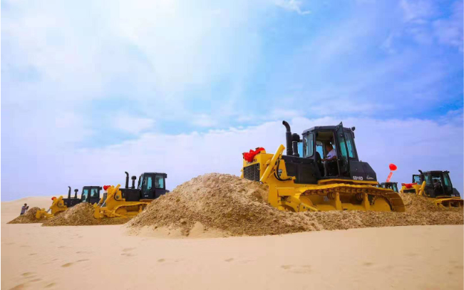 SD16D推土機(jī),助力國(guó)家沙漠治理、光伏項(xiàng)目的建設(shè)。沙漠地區(qū)溫度高,風(fēng)沙粉塵大對(duì)推土機(jī)進(jìn)氣系統(tǒng),冷卻系統(tǒng),駕駛室密封有嚴(yán)格的要求,SD16D推土機(jī)針對(duì)沙漠地區(qū)惡劣工況,定制化開(kāi)發(fā),由于超高的出勤率,超低的維護(hù)保養(yǎng)成本,贏得了用戶(hù)的充分認(rèn)可,為沙漠經(jīng)濟(jì)先導(dǎo)區(qū)的建設(shè)保駕護(hù)航。
