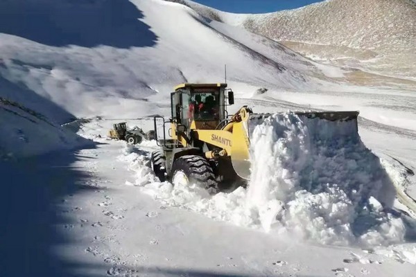公路籌備組保通人員巡查發(fā)現(xiàn)險情后,立即啟動除雪保通應急預案,積極投入到除雪保通工作中。為確保在最短的時間內恢復道路通行,12名保通人員、5臺裝載機夜以繼日,冒雪夜戰(zhàn),清理積雪30多萬立方米。此次參與公路除雪任務的山推5噸裝載機,動力強勁,轉向靈活,掘起力大,提升力強,滿斗率高,特別適合松散物料的裝載鏟運作業(yè)。歷時30多小時,積雪路段恢復通行。為進一步提高道路通行能力,保通人員繼續(xù)對該路段進行路面拓寬施工,繼續(xù)奮戰(zhàn)6個多小時,保通工作全面完成。