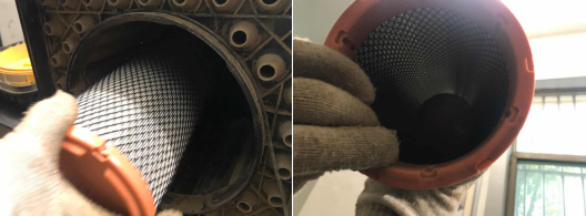 5、濾芯清理完畢后安裝安全濾芯,安裝安全濾芯時(shí),應(yīng)將安全濾芯輕輕推至底部,確定安全濾芯安裝是否到位,位置是否牢靠。
