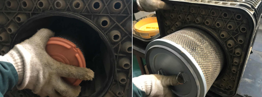 6、確保濾芯安裝牢靠后,用雙手旋入濾芯密封蓋,如有出現(xiàn)濾芯密封蓋無(wú)法完全旋入的情況,應(yīng)檢查濾芯是否有卡滯、安裝不到位的情況,濾芯密封蓋安裝無(wú)誤后,安裝側(cè)蓋板,依次緊固空氣濾清器周?chē)目ü?,檢查空氣濾清器密封性,確保各部件沒(méi)有泄漏。